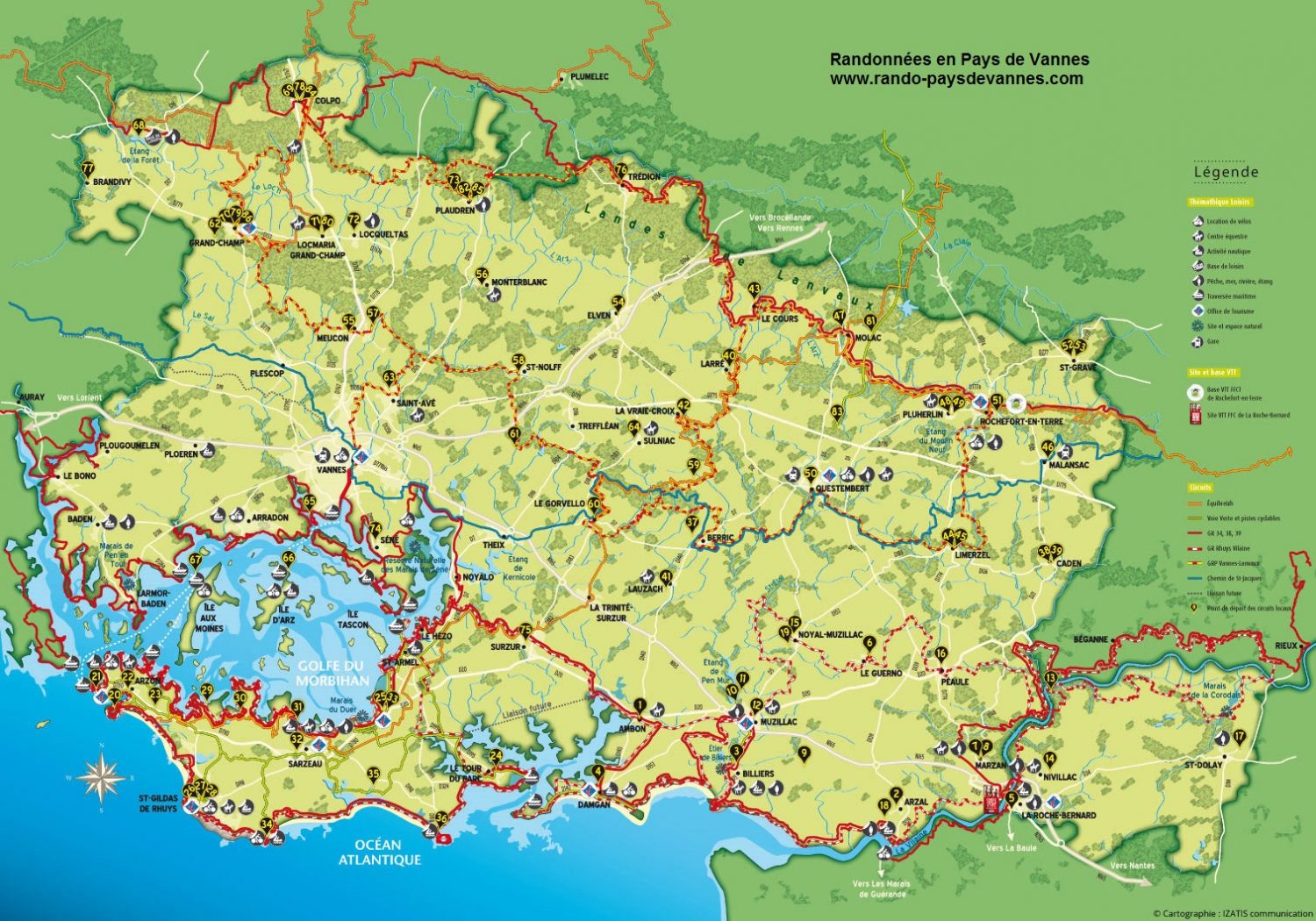Carte des randonnées en pays de Vannes (cliquer pour agrandir)